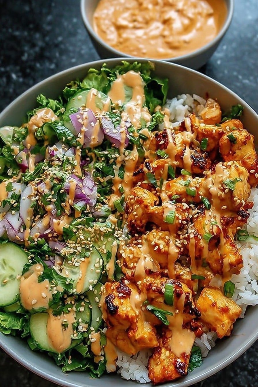 Bang Bang Chicken Bowl: Easy Chicken Bowls are a standout choice for anyone seeking flavor-packed, nutritious, and customizable meals that are quick to prepare and guaranteed to impress. The harmonious combination of tender chicken, fresh vegetables, zesty Bang Bang sauce, and hearty rice creates a complete meal that is as satisfying as it is visually stunning. With the flexibility to adapt to dietary needs and preferences—be it gluten-free, vegetarian, or low-carb—this recipe ensures that Bang Bang Chicken Bowl: Easy Chicken Bowls can find a place at virtually any table. Whether served for a speedy weeknight dinner, meal-prepped lunches, or a lively family gathering, these bowls are sure to become a staple recipe in your kitchen. Give this vibrant dish a try, and discover why Bang Bang Chicken Bowls have earned their name as an easy and irresistible choice for modern home cooks.