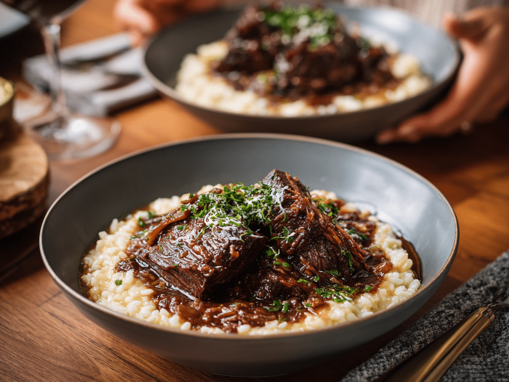 Searing the beef beforehand isn’t just for color; it develops complex flavors through Maillard browning essential for a truly savory braise. Don’t rush the braising time—low and slow is the golden rule. As for the risotto, patience and attention yield perfection.