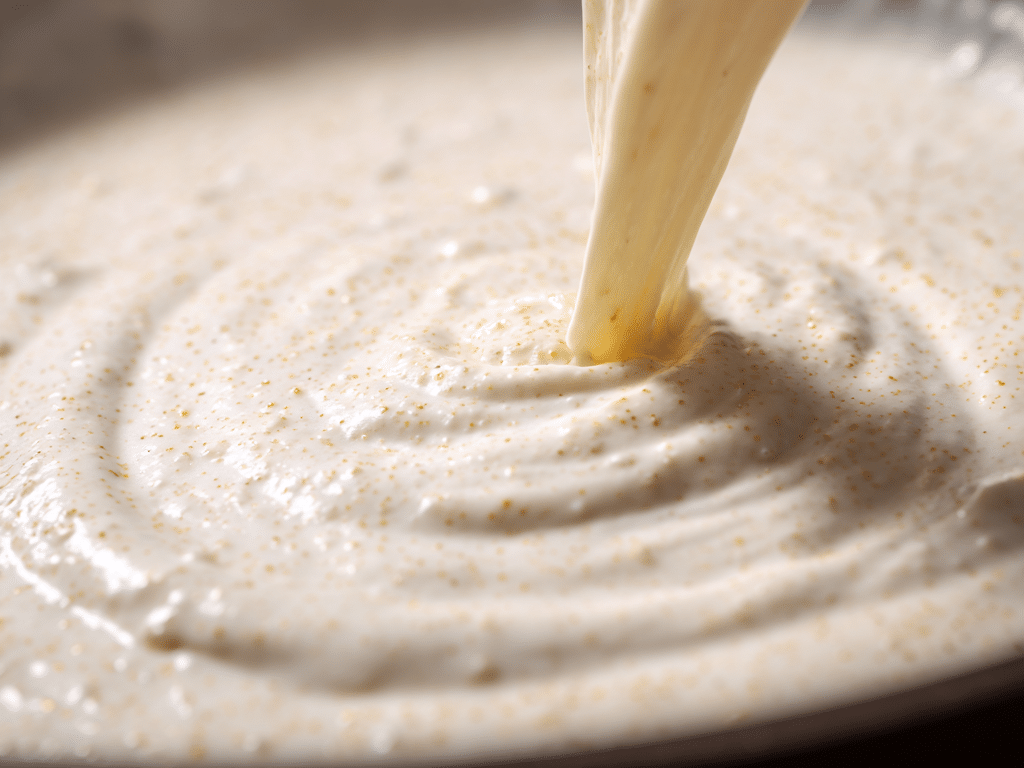 - Gradually pour in the whole milk, whisking constantly to prevent lumps from forming.