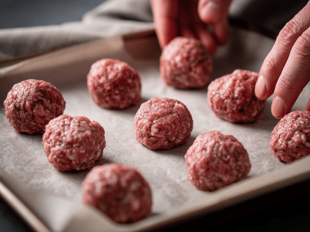 - Using your hands or a scoop, form the mixture into golf-ball–sized meatballs (about 1 to 1.5 inches in diameter). You should get about 20-24 meatballs.