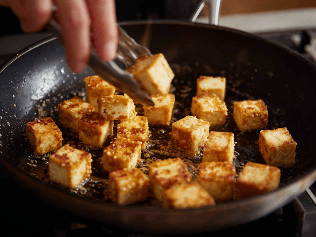 - Heat neutral oil in a nonstick skillet or air fryer to 375°F (190°C). Fry tofu cubes in a single layer, turning occasionally, until evenly golden and crispy (8-10 minutes stovetop, 10-15 minutes air fryer). Drain on a paper towel-lined plate and set aside.