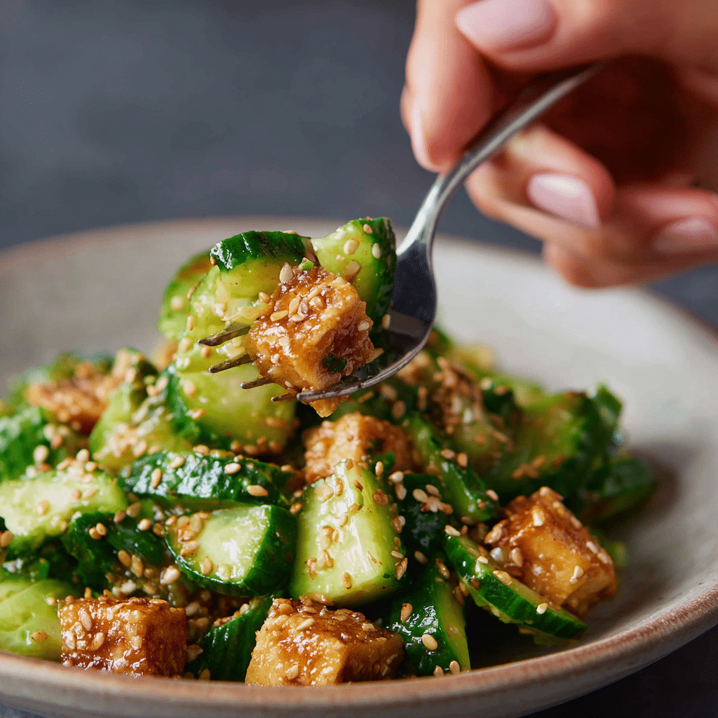 If time allows, marinate the tofu cubes in a little tamari and sesame oil before dredging in cornstarch for even deeper flavor. When slicing cucumbers, a mandoline delivers uniformly thin slices, but a good kitchen knife works, too—just aim for even thickness so the dressing coats everything equally.
