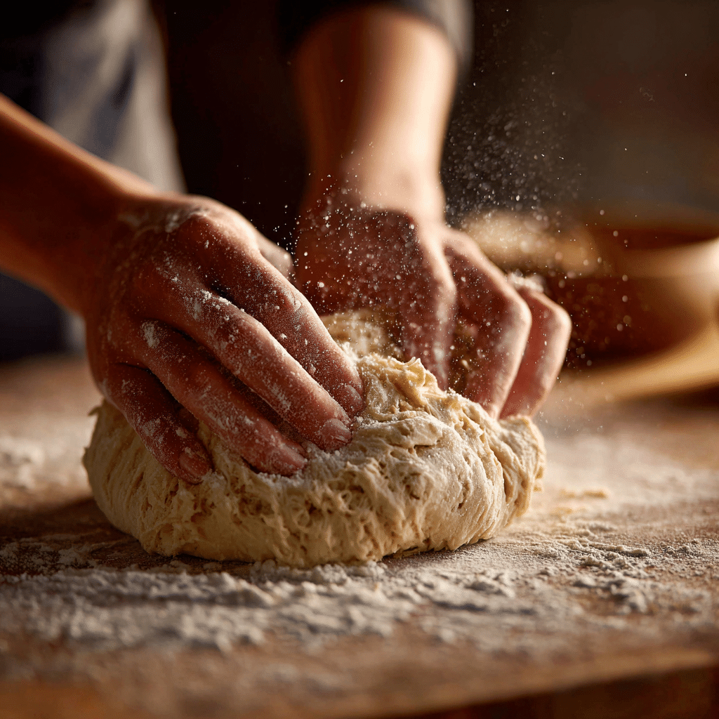 - Turn the dough out onto a lightly floured surface and knead for 8-10 minutes, or until smooth, elastic, and slightly tacky. Add flour as needed to prevent sticking.