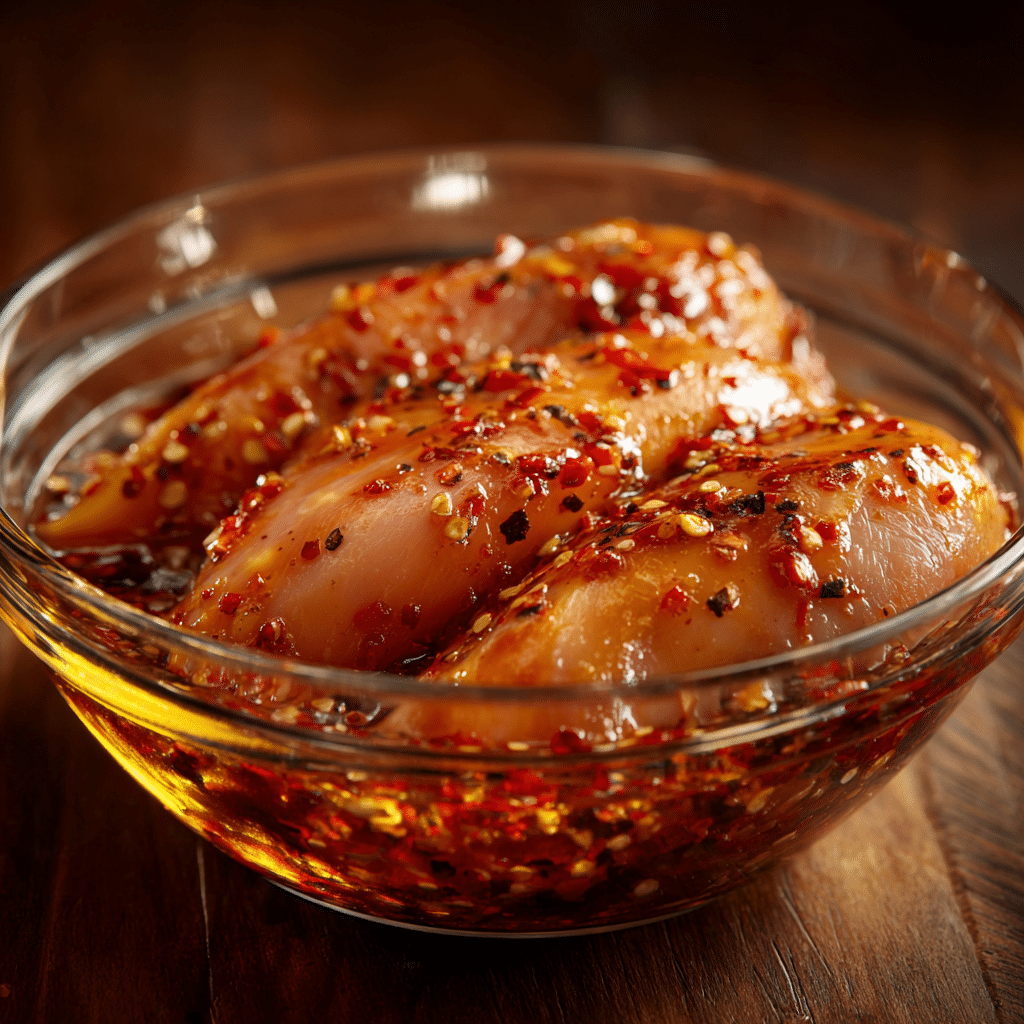 - Start by marinating the chicken breasts: In a bowl, combine 1 tablespoon of soy sauce, 1 teaspoon sesame oil, 1/2 tablespoon chili paste, and a pinch of salt and pepper. Add the chicken breasts and toss to coat. Set aside for at least 20 minutes.