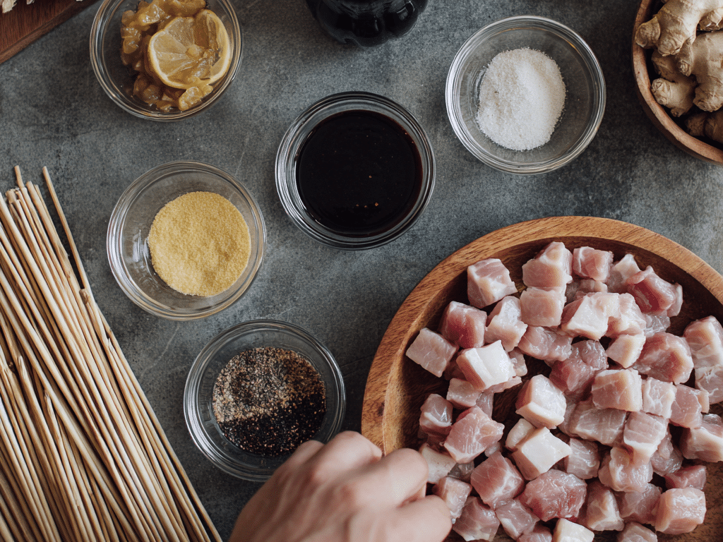 When selecting pork, opt for pork shoulder or butt with a good amount of marbling, as the fat helps keep the skewers juicy during grilling.