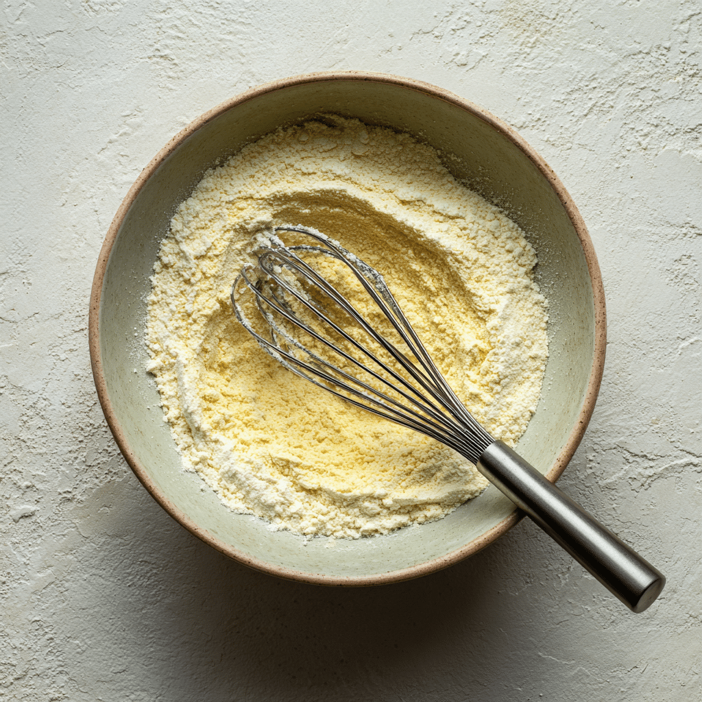 2In a large bowl, whisk together cornmeal, flour, sugar, baking powder, and salt.