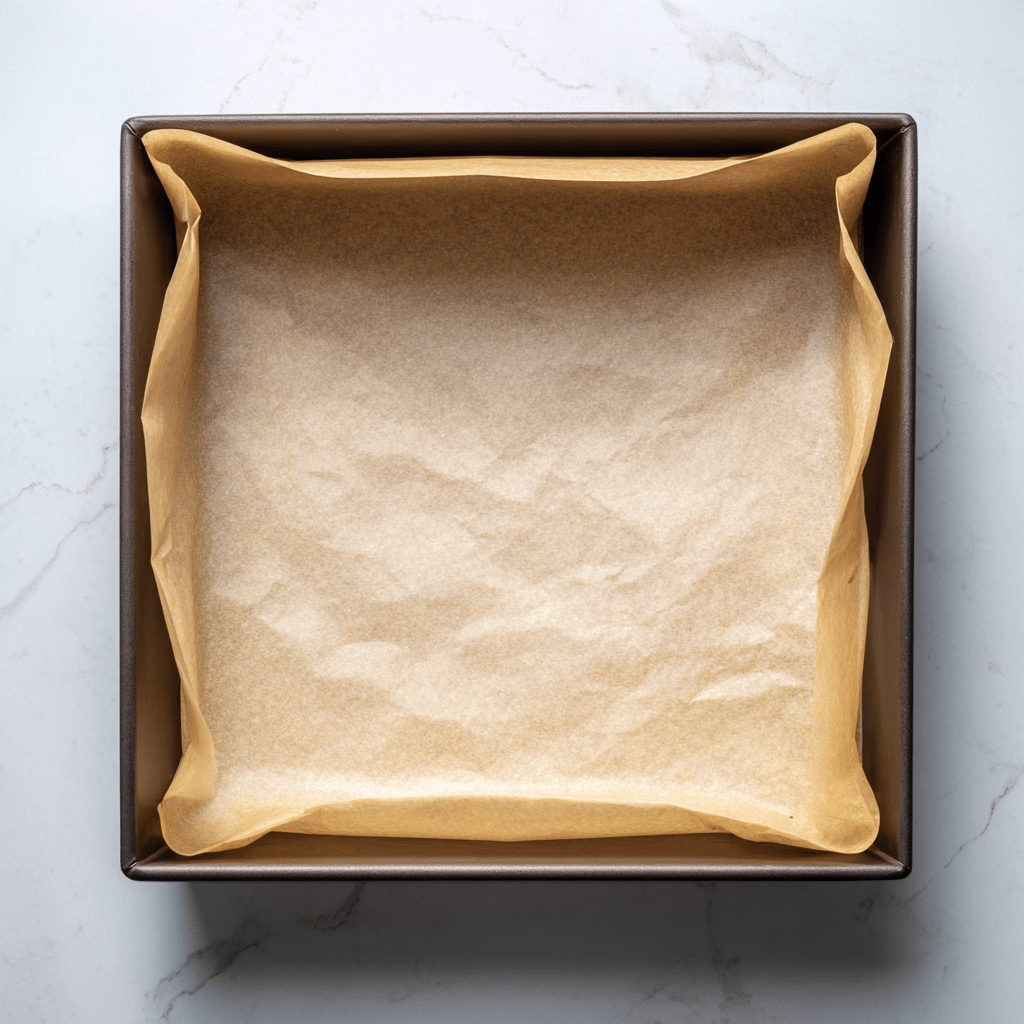 1Line an 8×8-inch baking dish with parchment paper, leaving some overhang for easy removal.