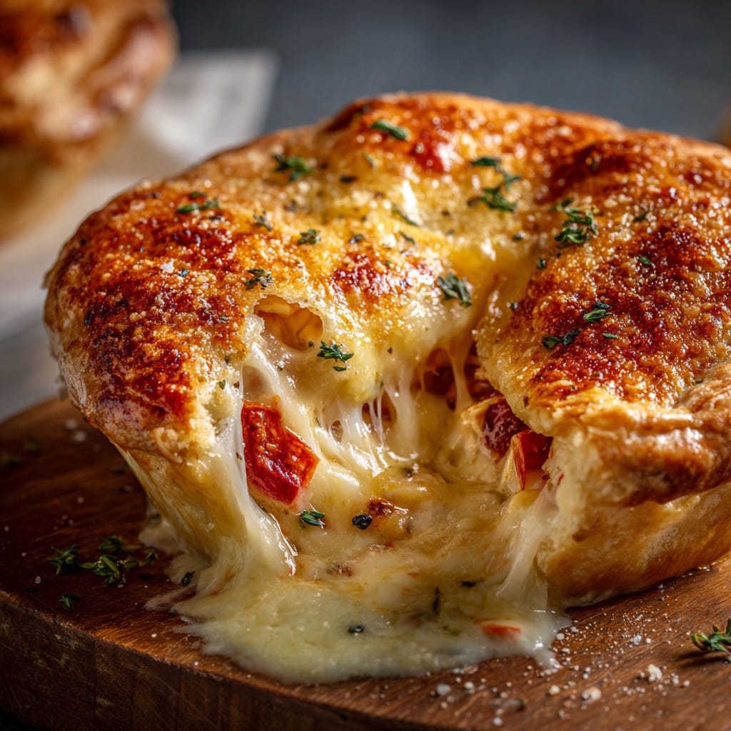 Get creative with your Pizza Pot Pies fillings! Try roasted vegetables like zucchini, spinach, or artichoke hearts for added nutrition. For a gourmet twist, experiment with cheeses such as fontina, provolone, or goat cheese. Swap out standard pizza sauce for pesto or creamy Alfredo to alter the flavor profile.