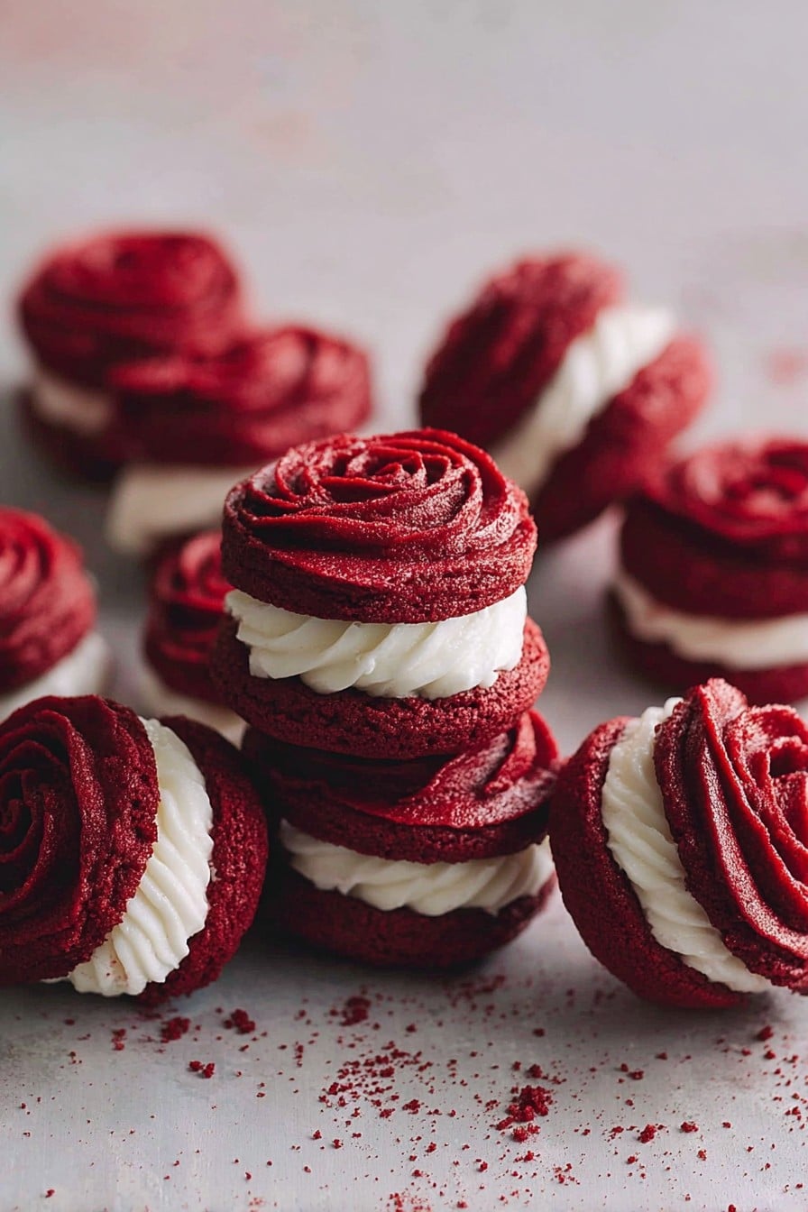 For holidays like Valentine’s Day, setting the cookies atop a heart-shaped plate or next to a bouquet of roses ties together the festive theme. Red Velvet Rose Sandwich Cookies perform well as part of a dessert buffet, especially when plated alongside complementary treats like macarons or chocolate-dipped strawberries.