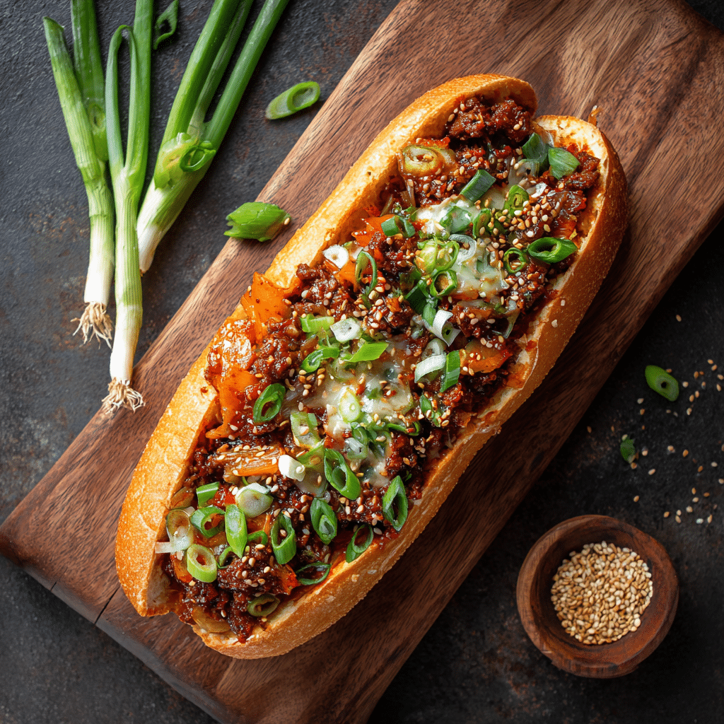 The Spicy Kimchi Bulgogi Cheesesteak is a fusion sandwich that uniquely melds the robust, spicy, and savory flavors of Korean bulgogi and kimchi with the classic comfort of an American cheesesteak. It’s a celebration of culinary creativity, perfect for those looking to expand their palate or impress guests with something special. Its dynamic flavor profile—sweet, tangy, spicy, and cheesy—offers satisfaction in every bite. Adaptable for different diets and completely customizable, this sandwich is destined to become a staple in your kitchen. Indulge in the Spicy Kimchi Bulgogi Cheesesteak for a memorable meal that stands out from the ordinary.