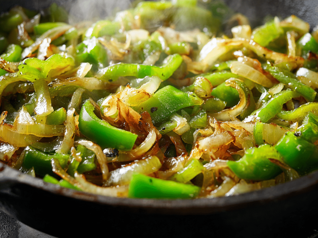The beef provides high-quality protein, iron, and zinc, which are essential for muscle health and energy metabolism. Onions and green bell peppers are packed with vitamins, particularly vitamin C and antioxidants that boost the immune system and support skin health.