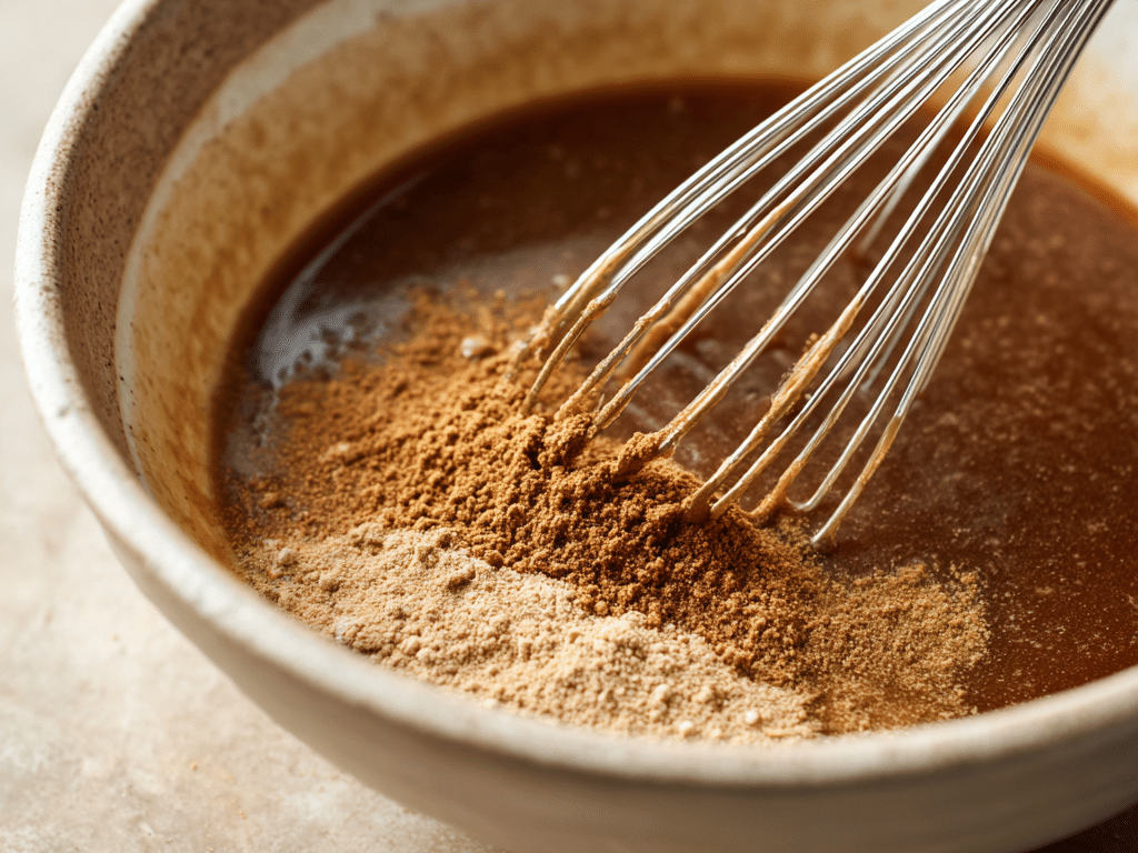 - In a medium mixing bowl or large measuring cup, combine the gingerbread syrup, vanilla extract, maple syrup or honey (if using), ground cinnamon, ground ginger, nutmeg, and cloves. Mix well until all spices are fully blended.